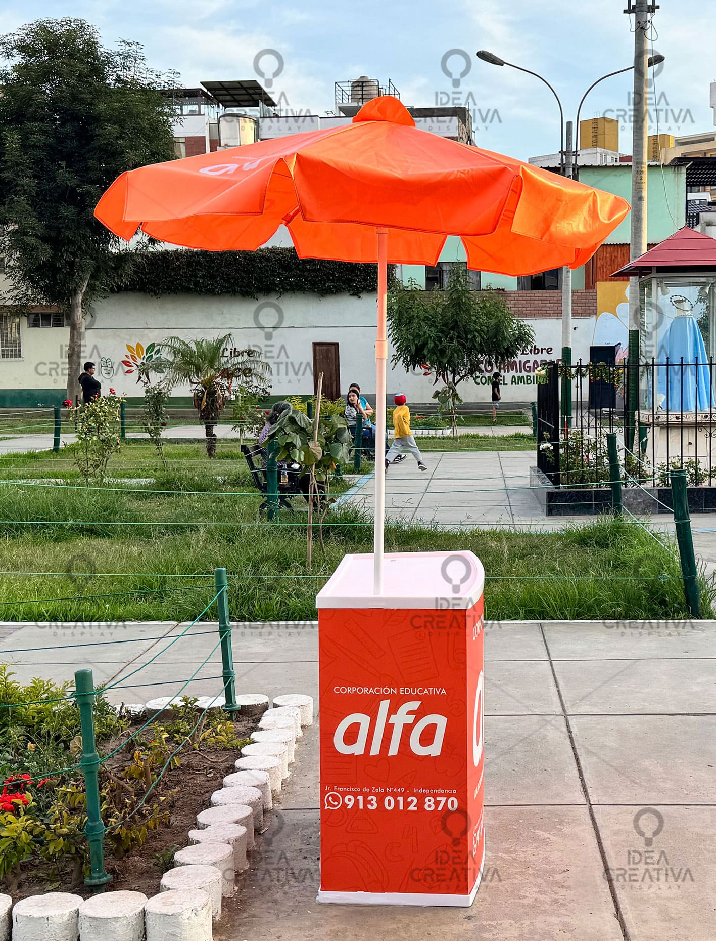 • Sombrilla de lino impermeable: 1.50 mt ancho x 2.10 mt alto x 1.50 mt de profundidad