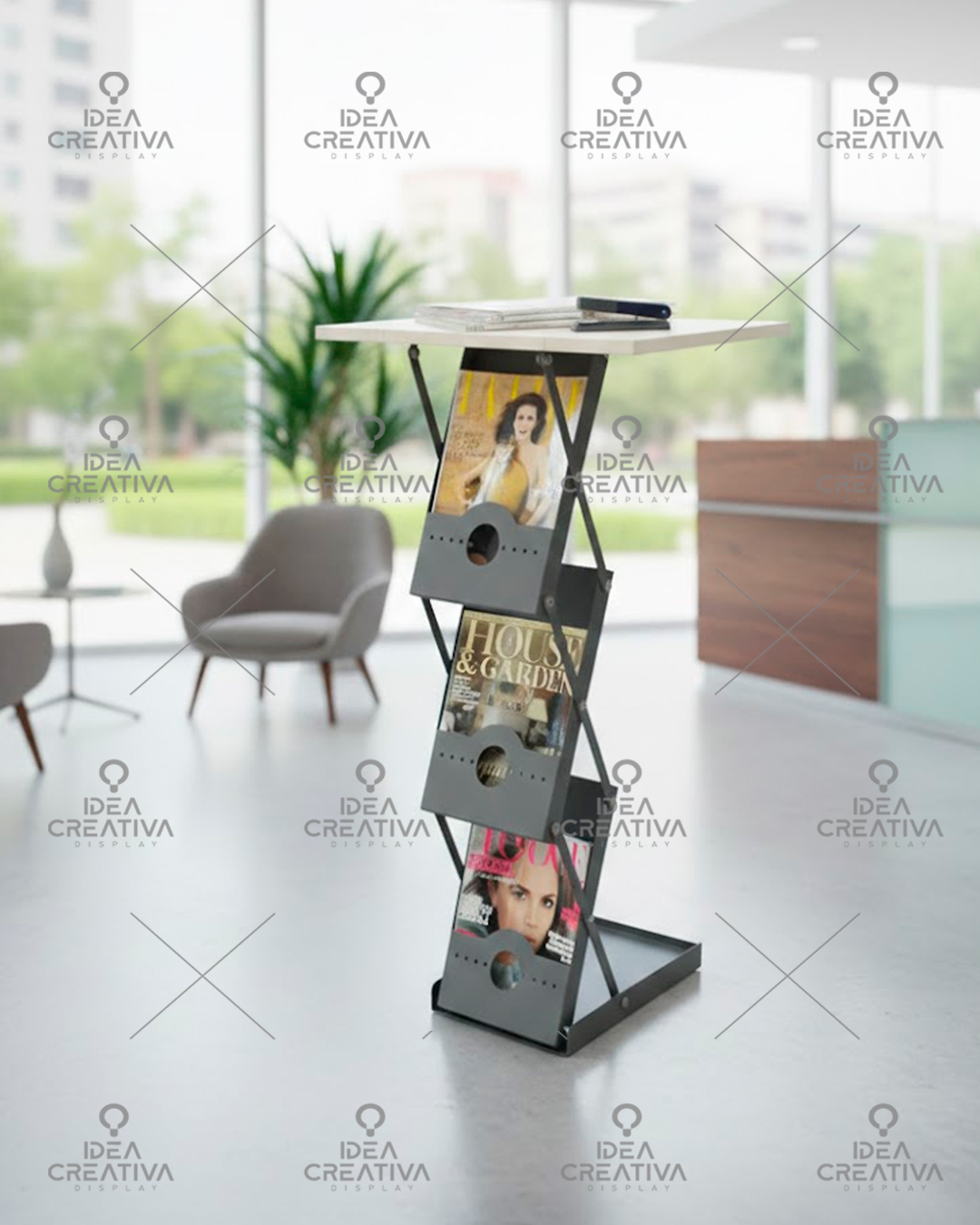 Diseño: Estructura de aluminio superior giratorio 360° grados moderno y atractivo, que llama la atención e invita a la interacción con su publico objetivo.