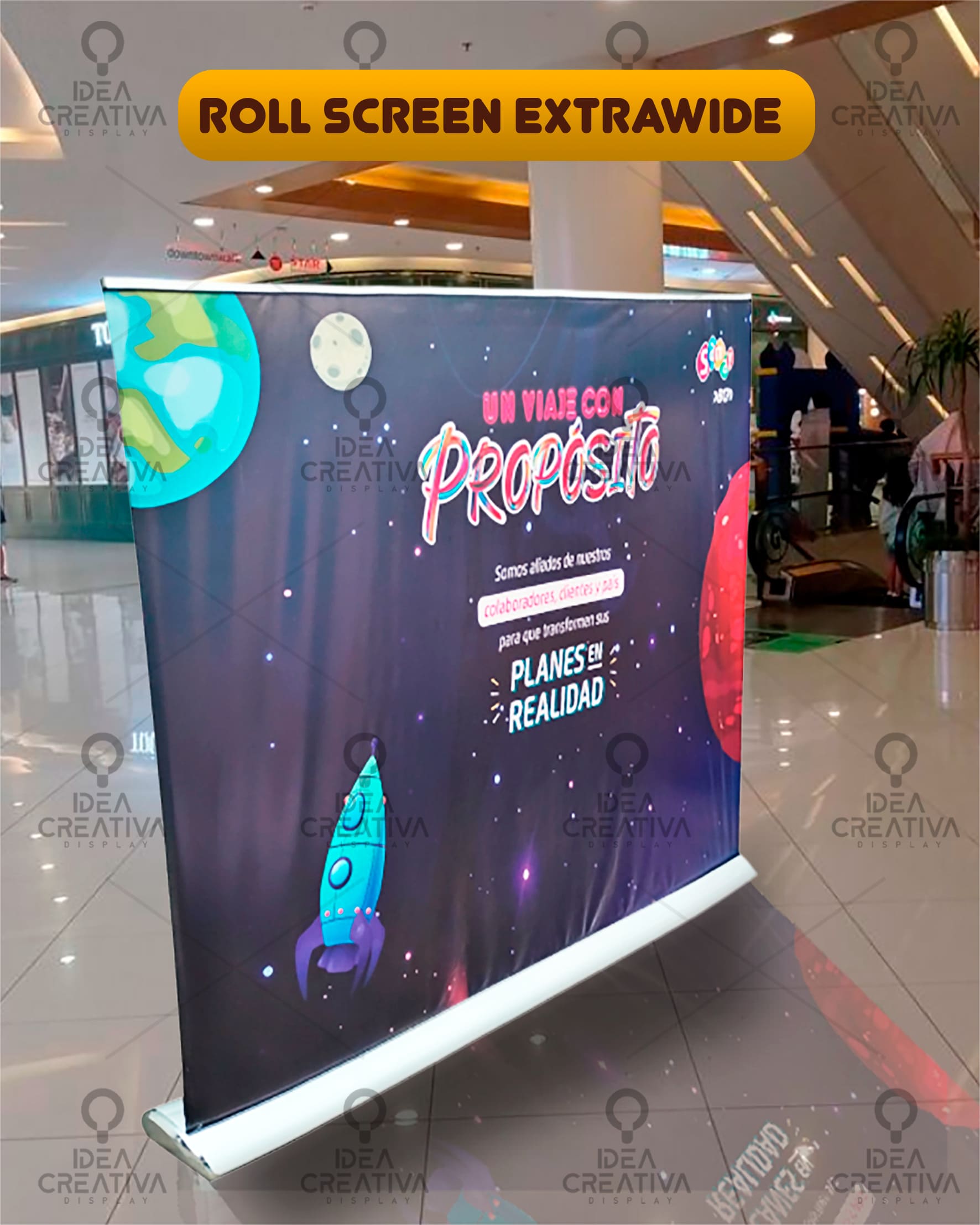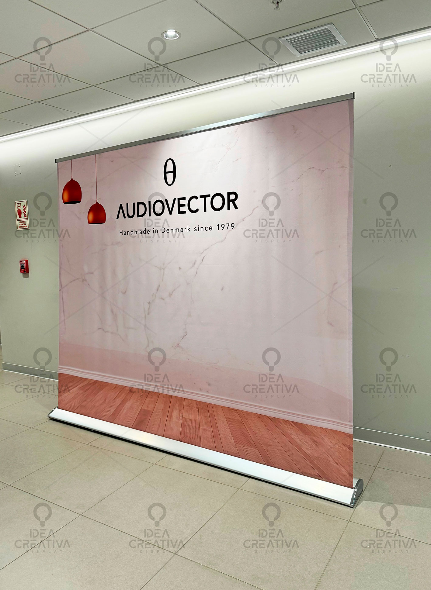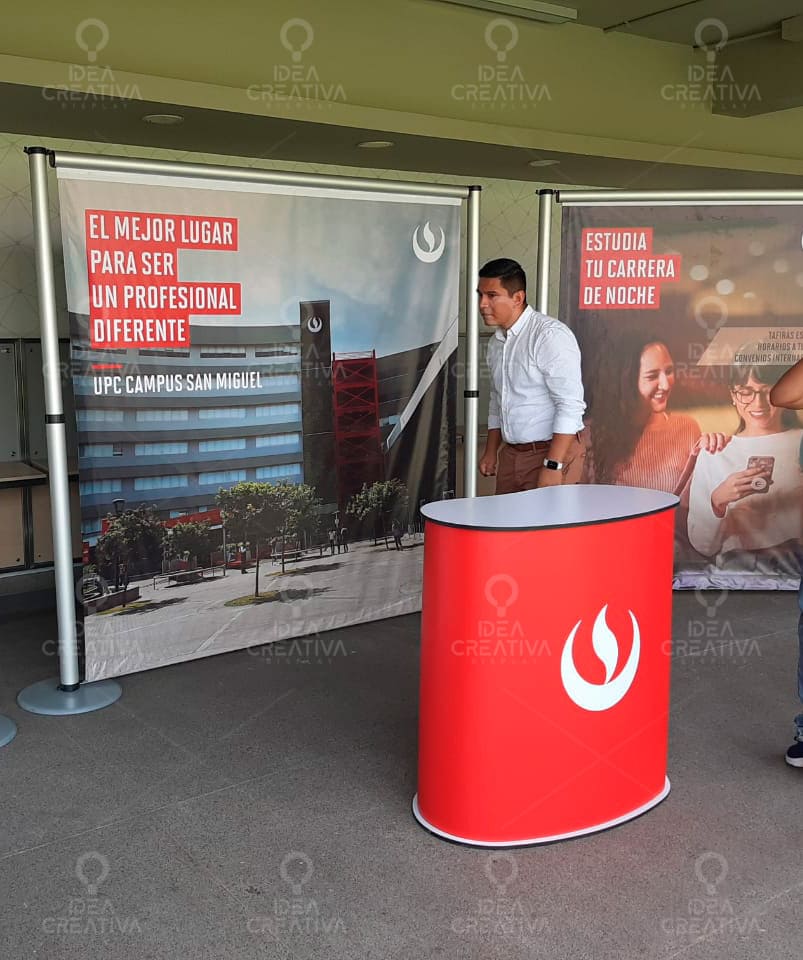 Imagen: La impresión de alta resolución es realizada en banner mesh de finos agujeros para resistir los vientos fuertes dependiendo el lugar donde se instalará, el aspecto sobrio y elegante del metal color gris matte brinda una imagen profesional y de alto impacto.