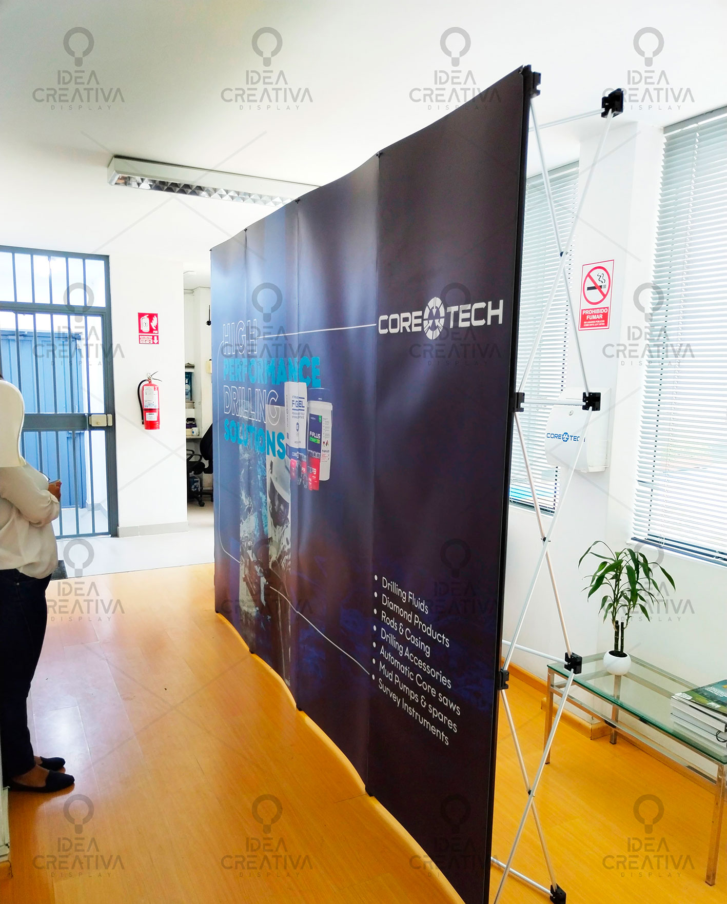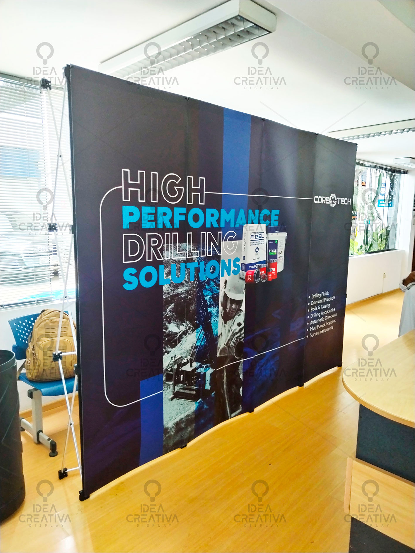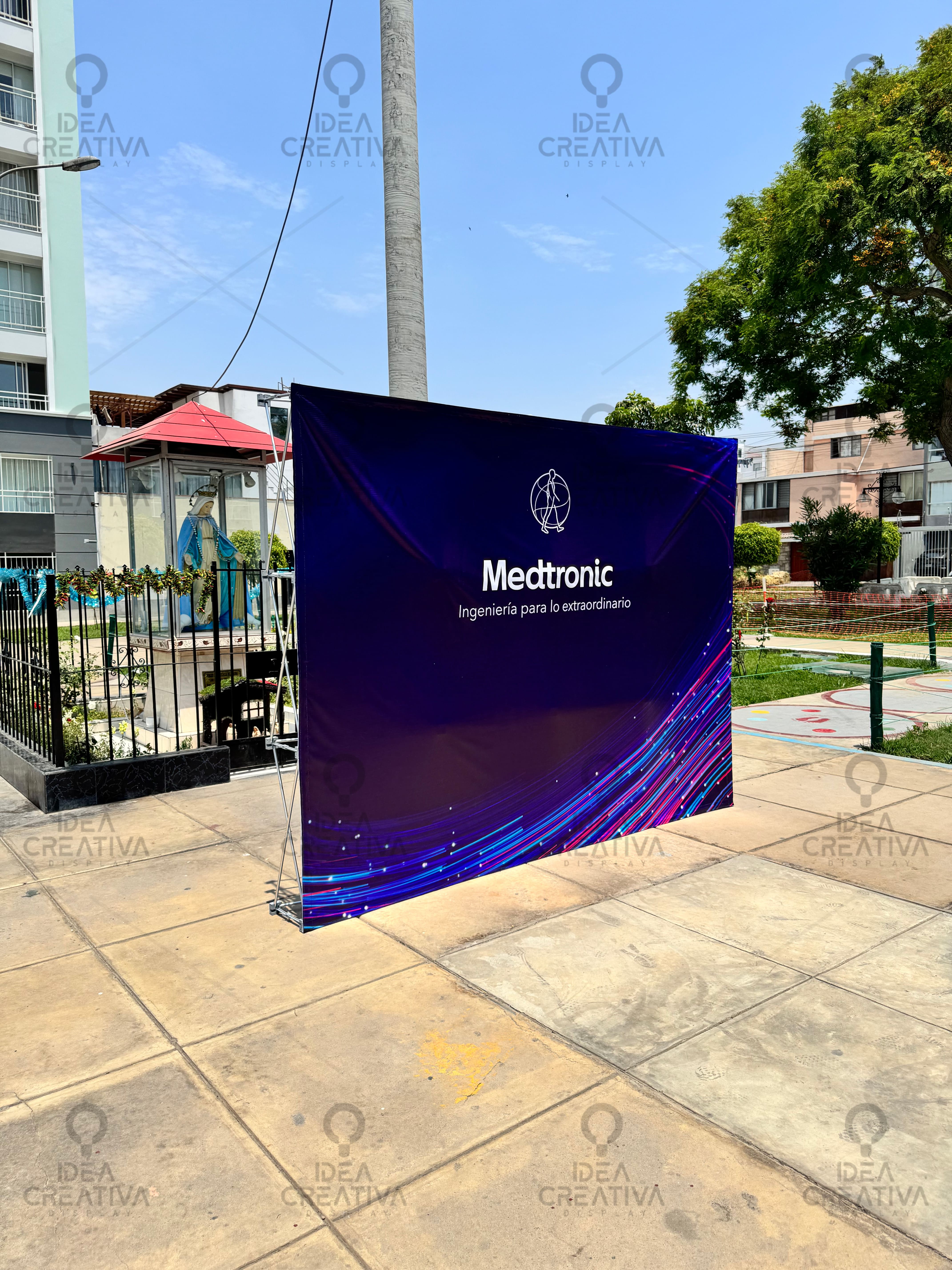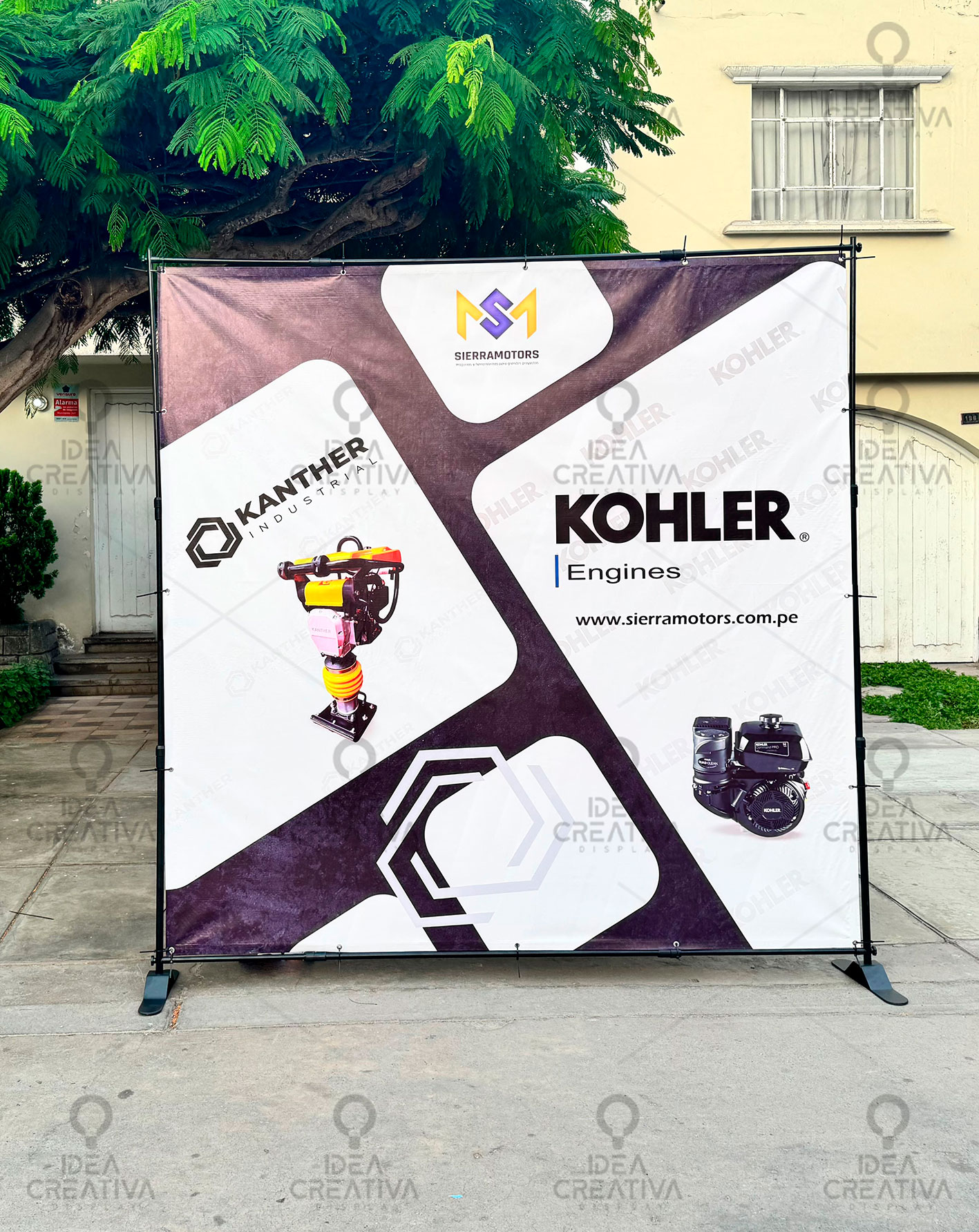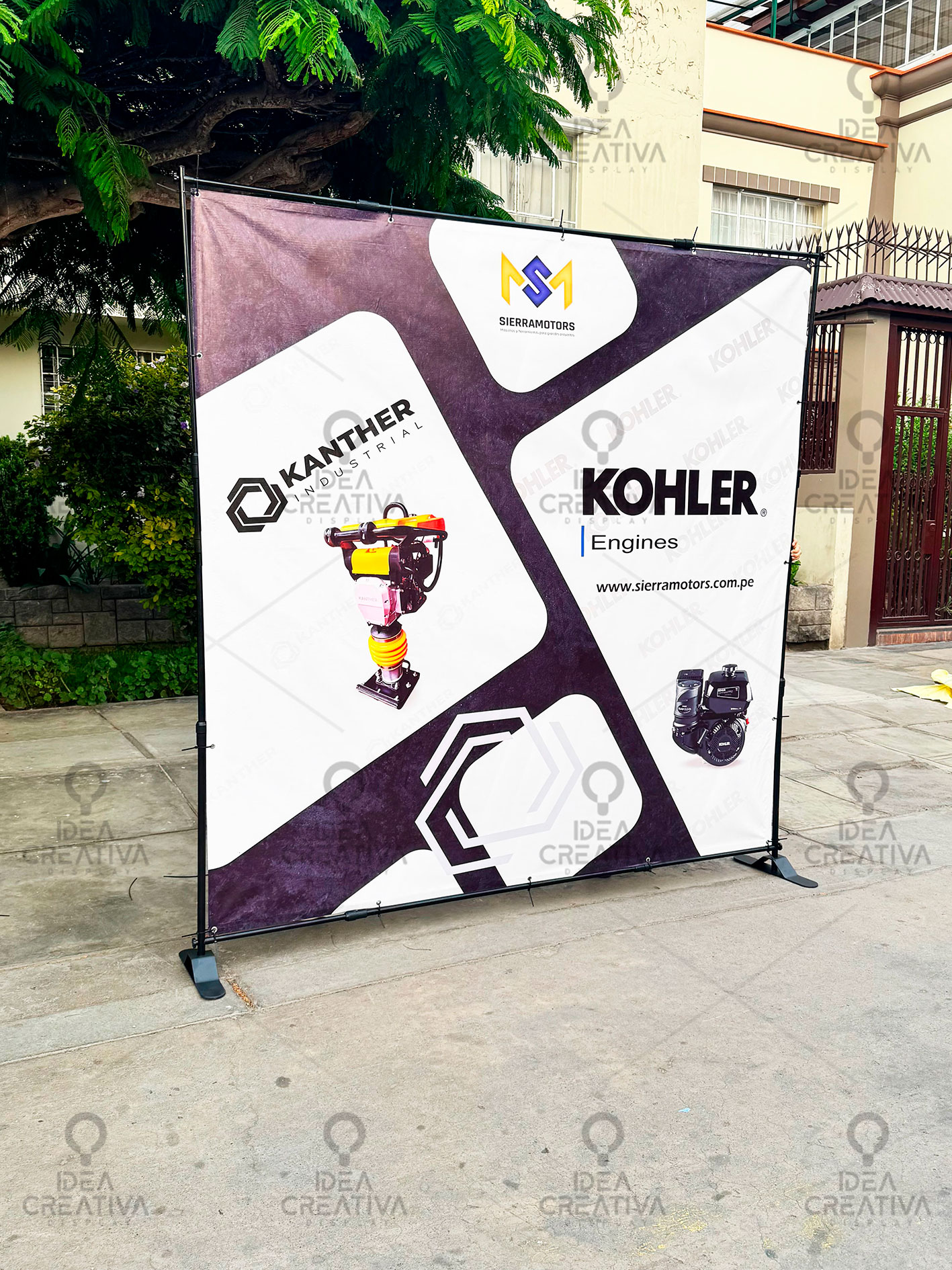 Versatilidad: Las estructuras de metal son piezas encajables , regulable y empernables permitiendo crear paredes rectas, rectangulares y lleva bases de fierro pesado para mejor estabilidad de el backing al aire libre en espacios de exterior.